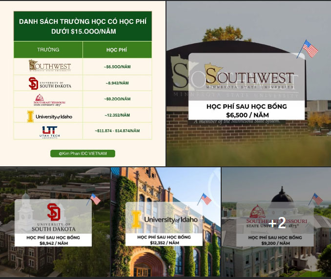 Dưới đây là các trường tiêu biểu học phí dưới $15,000/năm: